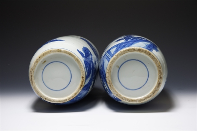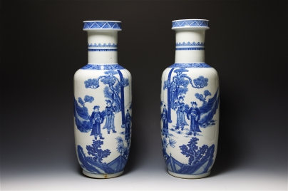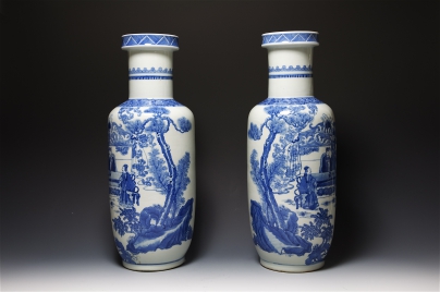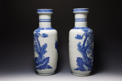 A PAIR OF BLUE AND WHITE ROULEAU VASE