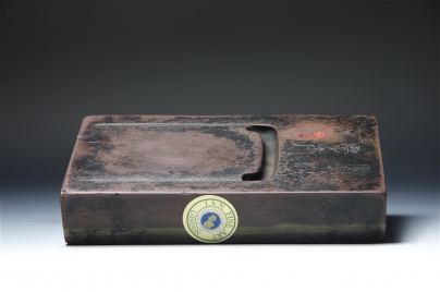 广东端州端石雕方形砚,四彻面有一绿色带状环绕,称玉带砚。