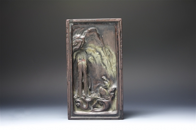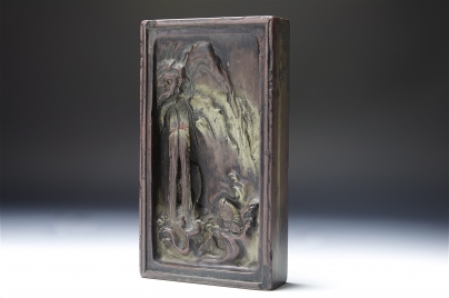 ,水波纹中锦鲤跳跃,瀑布里藏一锦鲤,添加活泼性,是此玉带砚的雕刻重点。