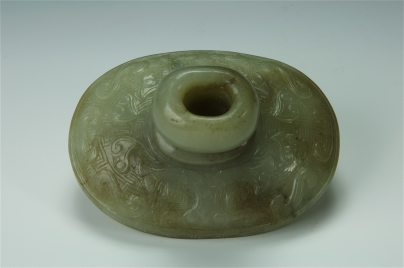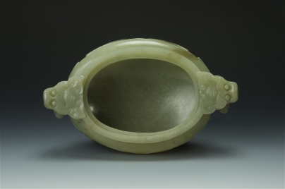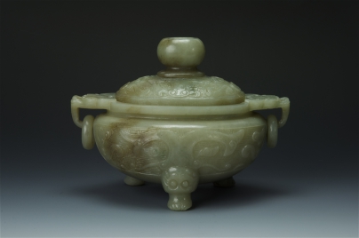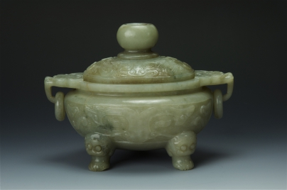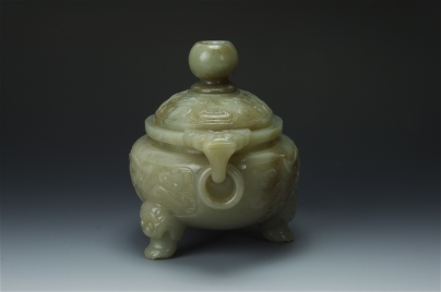 青白玉饕餮紋雙耳活環三足蓋爐