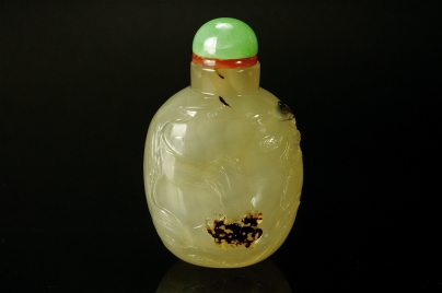 蘇作瑪瑙鼻煙壺年獸送福 |