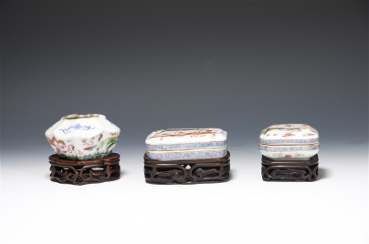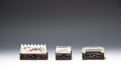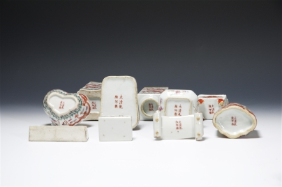墨床W8.4cm 紙鎮H5.4cm 筆架L9.7cm 印泥盒W7cm 硯台L9.5cm 水盛L9.8cm 方瓶H12.3cm 花薰H7cm(蓋修)爐H9.7cm(雙耳修)筆筒H11.2cm