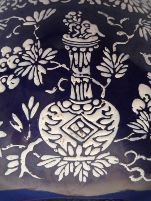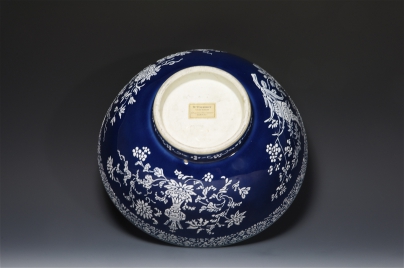 藍地珍珠白粉彩大碗