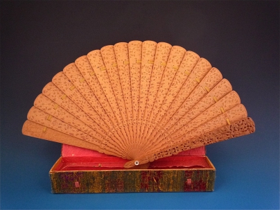 檀香木山水人物紋扇