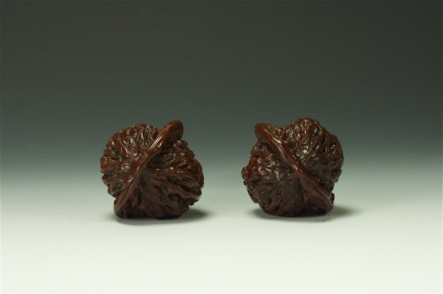 核桃一對,無工。棗紅色,色如琥珀,就其皮殼氧化現象斷其應為清初的產品。
