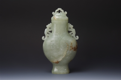 青白玉龍繩紋雙耳蓋瓶