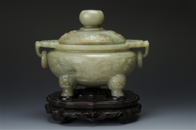 青白玉饕餮紋雙耳活環三足蓋爐