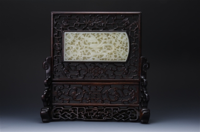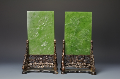 碧玉鳳凰牡丹紋硯屏ㄧ對